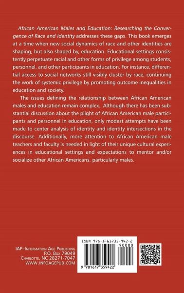 African American Males in Education: Researching the Convergence of Race and Identity addresses a number of research gaps. This book emerges at a time when new social dynamics of race and other identities are shaping, but also shaped by, education. Educational settings consistently perpetuate racial and other forms of privilege among students, personnel, and other participants in education. For instance, differential access to social networks still visibly cluster by race, continuing the work of systemic privilege by promoting outcome inequalities in education and society. The issues defining the relationship between African American males and education remain complex. Although there has been substantial discussion about the plight of African American male participants and personnel in education, only modest attempts have been made to center analysis of identity and identity intersections in the discourse. Additionally, more attention to African American male teachers and faculty is needed in light of their unique cultural experiences in educational settings and expectations to mentor and/or socialize other African Americans, particularly males.