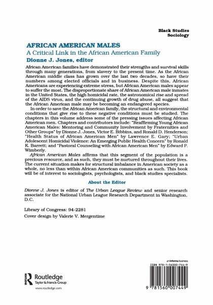 American Males affirms that this segment of the population is a precious resource, and as such, they must be nurtured throughout their lives. This book will be of interest to sociologists, psychologists, and black studies specialists.