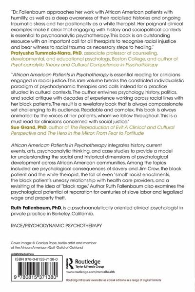 "Dr. Fallenbaum approaches her work with African American patients with humility, as well as a deep awareness of their racialized histories and ongoing traumatic stress and her positionality as a white therapist. Her poignant clinical examples make it clear that engaging with history and sociopolitical contexts is essential to psychoanalytic psychotherapy. This book is an outstanding resource with an important call for all therapists to recognize racial injustice and bear witness to racial trauma as necessary steps to healing."