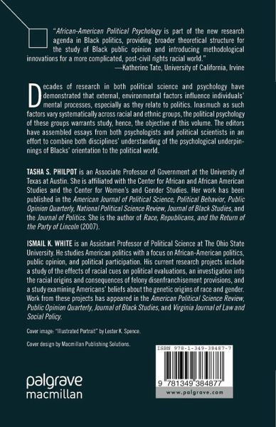 " African-American Political Psychology is part of the new research agenda in Black politics, providing broader theoretical structure for the study of Black public opinion and introducing methodological innovations for a more complicated, post-civil rights racial world." - Katherine Tate, University of California, Irvine