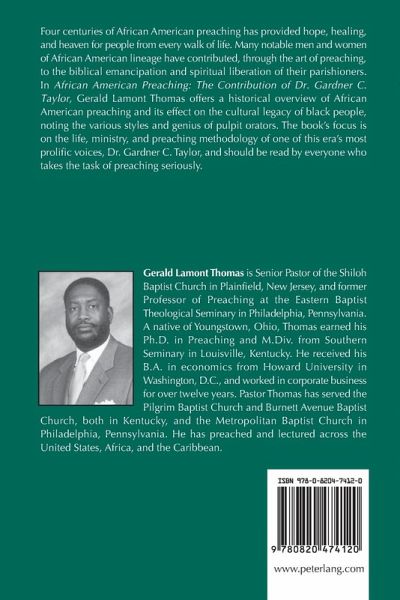 «This book serves as a valuable historical resource in the library of all preachers, especially African Americans. The art, style, and form of our preaching, even today, is a derivative from men like King, Thurman, and, of course, Dr. Gardner C. Taylor. His powerful, poetic, cultural transcending preaching has and will bless preachers and parishioners for years to come. Thanks to Gerald Lamont Thomas for his research and resilience in compiling this work on the legacy of African American preaching.» (Louis B. Jones, II, Pastor, Pilgrim Baptist Church, Washington, D.C.)