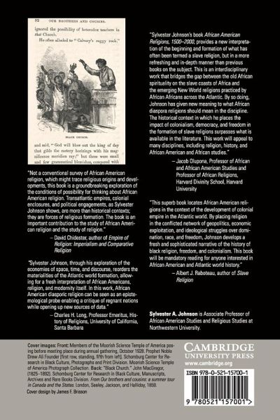This book provides a narrative historical, postcolonial account of African American religions. It examines the intersection of Black religion and colonialism over several centuries to explain the relationship between empire and democratic freedom. Rather than treating freedom and its others (colonialism, slavery and racism) as opposites, Sylvester A. Johnson interprets multiple periods of Black religious history to discern how Atlantic empires (particularly that of the United States) simultaneously enabled the emergence of particular forms of religious experience and freedom movements as well as disturbing patterns of violent domination. Johnson explains theories of matter and spirit that shaped early indigenous religious movements in Africa, Black political religion responding to the American racial state, the creation of Liberia, and FBI repression of Black religious movements in the twentieth century. By combining historical methods with theoretical analysis, Johnson explains the seeming contradictions that have shaped Black religions in the modern era.
