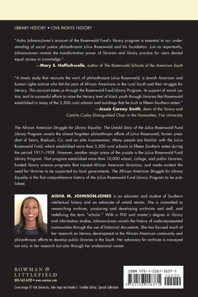 The Julius Rosenwald Fund Library Program established more than 10,000 libraries to include book sets, book mobiles, and physical locations to increase literacy among African Americans as a means to increase educational opportunities. This book is the first comprehensive history of the Julius Rosenwald Fund Library Program to be published.