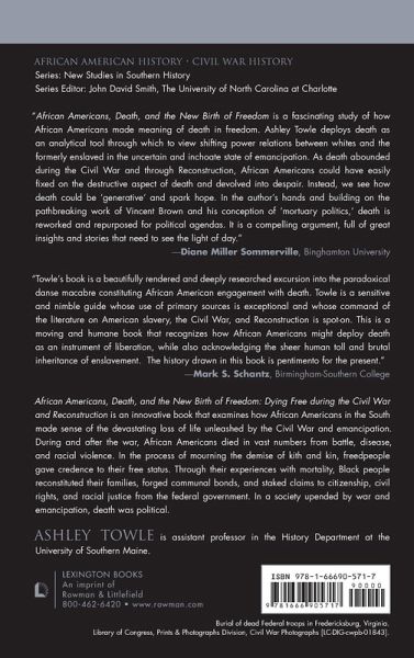 This innovative book examines how African Americans in the South made sense of the devastating loss of life unleashed by the Civil War and emancipation. During and after the war, African Americans died in vast numbers from battle, disease, and racial violence. While freedom was a momentous event for the formerly enslaved, it was also deadly. Through an investigation into how African Americans reacted to and coped with the passing away of loved ones and community members, Ashley Towle argues that freedpeople gave credence to their free status through their experiences with mortality. African Americans harnessed the power of death in a variety of arenas, including within the walls of national and private civilian cemeteries, in applications for widows' pensions, in the pulpits of black churches, around séance tables, on the witness stand at congressional hearings, and in the columns of African American newspapers. In the process of mourning the demise of kith and kin, black people reconstituted their families, forged communal bonds, and staked claims to citizenship, civil rights, and racial justice from the federal government. In a society upended by civil war and emancipation, death was political.