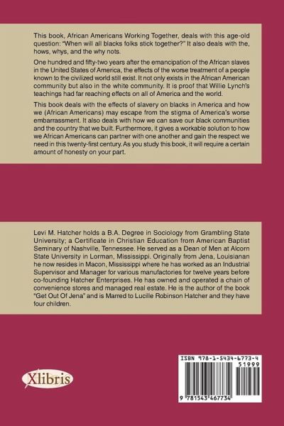 This book, African Americans Working Together, deals with this age-old question: "When will all blacks folks stick together?" It also deals with the, hows, whys, and the why nots. One hundred and fifty-two years after the emancipation of the African slaves in the United States of America, the effects of the worse treatment of a people known to the civilized world still exist. It not only exists in the African American community but also in the white community. It is proof that Willie Lynch’s teachings had far reaching effects on all of America and the world. This book deals with the effects of slavery on blacks in America and how we (African Americans) may escape from the stigma of America’s worse embarrassment. It also deals with how we can save our black communities and the country that we built. Furthermore, it gives a workable solution to how we African Americans can partner with one another and gain the respect we need in this twenty-first century. As you study this book, it will require a certain amount of honesty on your part.