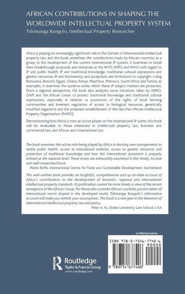 Africa is playing an increasingly more significant role in the domain of international intellectual property law, and this book underlines the contributions made by African countries as a group to the development of the current international IP system. It examines in detail their breakthrough proposals and initiatives at the WTO, WIPO and WHO with regard to IP and public health; IP and traditional knowledge, traditional cultural expressions and genetic resources; IP and biodiversity; and exceptions and limitations to copyright. Using Botswana, Burundi, Egypt, Ghana, Kenya, Mauritius, Morocco, South Africa and Tunisia as examples, it examines the systems under which these IP subject matters are protected. From a regional perspective, the book also analyses some initiatives taken by ARIPO, OAPI and the African Union to protect traditional knowledge and traditional cultural expressions, especially in relation to protection of the rights of local farming communities and breeders, regulation of access to biological resources, genetically modified organisms and the proposed establishment of the new Pan-African Intellectual Property Organization (PAIPO). Demonstrating how Africa is now an active player on the international IP scene, this book will be invaluable to those interested in intellectual property law, business and commercial law, and African and international law.