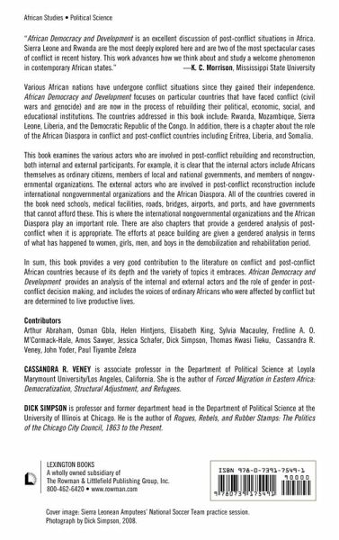 Part I: Demobilization and Reconstruction Chapter 1: Introduction Cassandra R. Veney Chapter 2: No Justice, No Peace: The Elusive Search for Justice and Reconciliation in Sierra Leone Sylvia Macauley Chapter 3: The Role of Ex-Combatants in Mozambique Jessica Schafer Chapter 4: Memory Controversies in Post-Genocide Rwanda: Implications for Peacebuilding Elisabeth King Part II: Institutional Challenges Chapter 5: Land Reform, Social Justice, and Reconstruction: Challenges for Post-Genocide Rwanda Helen Hintjens Chapter 6: Elections as a Stress Test of Democratization in Societies: A Comparison of Liberia, Sierra Leone, and the Democratic Republic of the Congo John Yoder Chapter 7: Partners or Adversaries? NGOs and the State in Postwar Sierra Leone Fredline A.O. M'Cormack-Hale Chapter 8: Chieftancy and Reconstruction in Sierra Leone Arthur Abraham Part III: Partnerships on the Way Forward Chapter 9: The Role of African Diasporas in Reconstruction Paul Tiyambe Zeleza Chapter 10: The Role of the African Union in Reconstruction in Africa Thomas Kwasi Tieku Chapter 11: Governance Challenges in Sierra Leone Osman Gbla 12: Challenges of Governance Reform in Liberia Amos Sawyer Part IV: The Future of Fragile States Chapter 13: Achieving Development and Democracy Dick Simpson