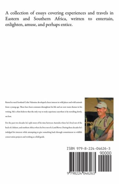 Raised in rural Scotland Colin Valentine developed a keen interest in wild places and wild animals from a young age. These have been constants throughout his life and are now main themes in his writing. He's a firm believer that the only way to truly experience anywhere is by travelling slowly, on foot. For the past two decades he's split most of his time between Australia where he’s lived out of the back of a Subaru, and southern Africa where he lives out of a Land Rover. During these decades he’s indulged his interests while attempting to give something back through commitment to wildlife conservation projects and working as a field guide. He has no official home of his own, relying on the generosity of friends and family when he needs a roof over his head and somewhere to write. Colin also believes we should be here for a good time as it's unlikely to be for a long time; and nobody should have to work for more than six months in any one year. He’s made it a personal goal to prove this is possible. So far so good.