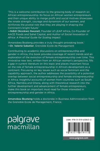 Contributing to academic discussions on entrepreneurship and gender in Africa, this book provides coverage of recent trends and an exploration of the evolution of female entrepreneurship over time. This innovative new text, written from an African woman's perspective, fills a gap in the current literature on this topic and places important focus on the role of female entrepreneurship in Africa's development as a continent. Focussing on key issues such as social feminism and the capability approach, the author addresses the possibility of a potential overlap between social entrepreneurship and female entrepreneurship in Africa. Insightful accounts of women from countries such as South Africa, Namibia and Ghana, along with theoretical research into the further development and advancement of female entrepreneurs, make this book an important must-read for those interested in entrepreneurship and gender in Africa.