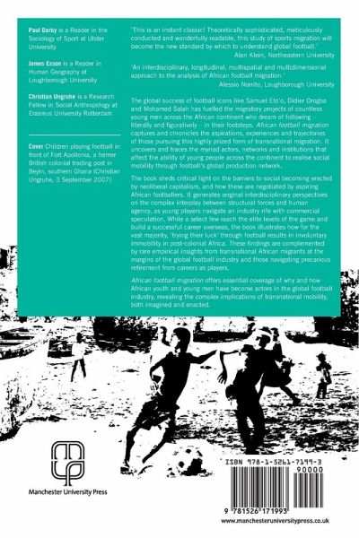 African football migration offers essential coverage of why and how African players have become actors in the global football industry. It reveals the meanings associated with migration in post-colonial Africa, and the implications of (im)mobility for the personal and professional life trajectories of youth and young men across the continent. -- .