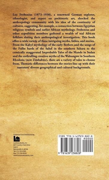 An eminent German explorer, ethnologist, and authority on prehistoric art, Leo Frobenius (1873‒1938) startled the world of anthropology with his concept of "continuity of cultures" - proposing, for instance, a link between Egyptian religious symbols and preexisting African mythology. In the course of his anthropological fieldwork, Frobenius and other members of his expeditions collected an abundance of authentic African folklore. This volume presents a rich selection of these fascinating tales, fables, and legends. Stories range from the Kabyl legends of the early Berbers and ballads of the Fulbe bards of Sahel in the southern Sahara to the comically exaggerated Improbable Tales of the Mande in Sudan and the captivating creation myths of the Wahungwe of Southern Rhodesia (now Zimbabwe). The thematic variations in the tales correspond with their narrators' diverse geographical and cultural backgrounds. Recounted with engaging simplicity and directness, these frequently amusing, sometimes bizarre stories are illustrated with adaptations of prehistoric rock paintings and portraits of twentieth-century Africans. Of immense value to students of African culture, this book will also appeal to the many devoted readers of folklore and mythology.