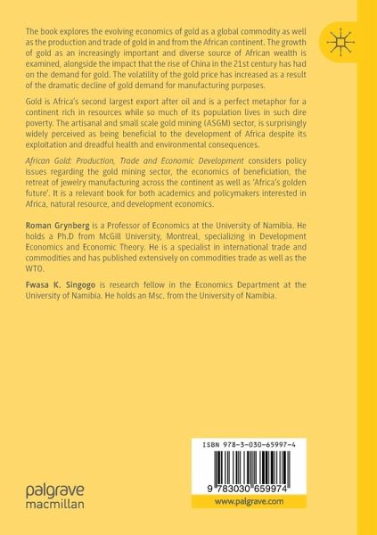 African Gold: Production, Trade and Economic Development considers policy issues regarding thegold mining sector, the economics of beneficiation, the retreat of jewelry manufacturing across the continent as well as 'Africa's golden future'. It is a relevant book for both academics and policymakers interested in Africa, natural resource, and development economics.