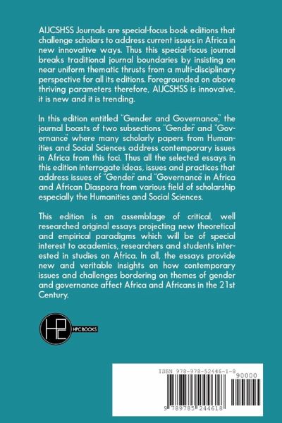 AIJCSHSS Journals are special-focus book editions that challenge scholars to address current issues in Africa in new innovative ways. In this edition entitled "Gender and Governance," the journal boasts of two subsections "Gender" and "Governance" where many scholarly papers from Humanities and Social Sciences address contemporary issues in Africa from this foci. Thus all the selected essays in this edition interrogate ideas, issues and practices that address issues of "Gender" and "Governance" in Africa and African Diaspora from various field of scholarship especially the Humanities and Social Sciences.