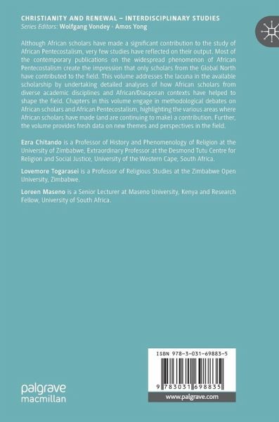 Although African scholars have made a significant contribution to the study of African Pentecostalism, very few studies have reflected on their output. Most of the contemporary publications on the widespread phenomenon of African Pentecostalism create the impression that only scholars from the Global North have contributed to the field. This volume addresses the lacuna in the available scholarship by undertaking detailed analyses of how African scholars from diverse academic disciplines and African/Diasporan context have helped to shape the field. The included chapters provid fresh data on new themes and perspectives in the field.