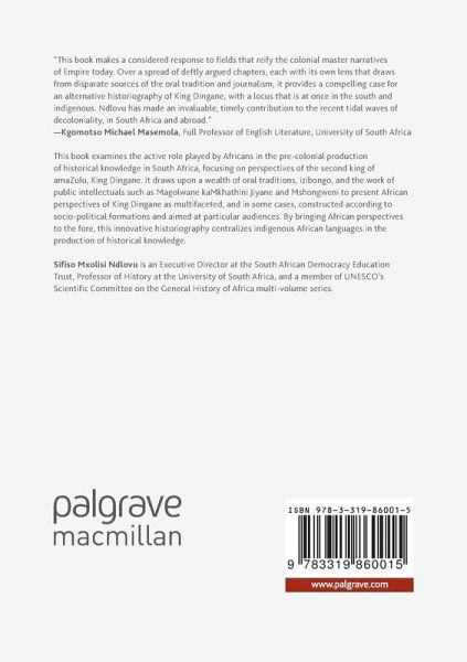 This book examines the active role played by Africans in the pre-colonial production of historical knowledge in South Africa, focusing on perspectives of the second king of amaZulu, King Dingane. It draws upon a wealth of oral traditions, izibongo, and the work of public intellectuals such as Magolwane kaMkhathini Jiyane and Mshongweni to present African perspectives of King Dingane as multifaceted, and in some cases, constructed according to socio-political formations and aimed at particular audiences. By bringing African perspectives to the fore, this innovative historiography centralizes indigenous African languages in the production of historical knowledge.