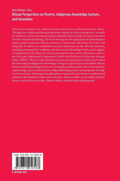This book examines the connections between poverty and innovation in Africa. Through case studies and theorizations from a distinctly African perspective, it stands in contrast to current theoretical works in the field, which remain very much rooted in Western-orientated thinking. The book investigates the application of methodologies which explain numerous African contexts in connection with issues of poverty and inequality. It reflects on comparative practices and praxes on the African continent, including commonplace traditions and practices in alleviating poverty, taken against a background of the failure of current prescriptions for poverty alleviation, such as the Structural Adjustment Programmes (SAPs) and the Poverty Reduction Strategy Papers (PRSP). There is a dire need for new practical perspectives which move Africa forward using its indigenous knowledge. Owing to a general lack of recorded African theories and methodologies on poverty, inequality and innovation, this book represents a pioneering corpus of African knowledge addressing poverty and inequality through local innovations. Adopting a transdisciplinary approach, it is relevant to students and scholars in development studies and economics, African studies, social studies, political history and political economy, climate studies, anthropology and geography.