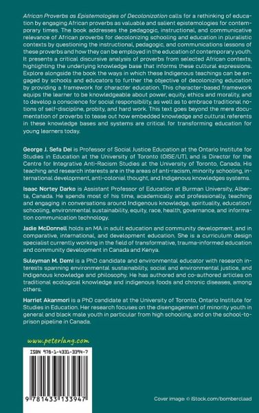 African Proverbs as Epistemologies of Decolonization calls for a rethinking of education by engaging African proverbs as valuable and salient epistemologies for contemporary times. The book addresses the pedagogic, instructional, and communicative relevance of African proverbs for decolonizing schooling and education in pluralistic contexts by questioning the instructional, pedagogic, and communications lessons of these proverbs and how they can be employed in the education of contemporary youth. It presents a critical discursive analysis of proverbs from selected African contexts, highlighting the underlying knowledge base that informs these cultural expressions. Explore alongside the book the ways in which these Indigenous teachings can be engaged by schools and educators to further the objective of decolonizing education by providing a framework for character education. This character-based framework equips the learner to be knowledgeable about power, equity, ethics and morality, and to develop a conscience for social responsibility, as well as to embrace traditional notions of self-discipline, probity, and hard work. This text goes beyond the mere documentation of proverbs to tease out how embedded knowledge and cultural referents in these knowledge bases and systems are critical for transforming education for young learners today.