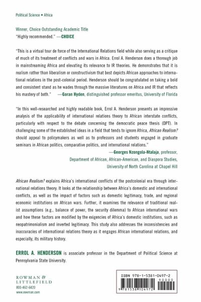 African Realism? explains Africa's international conflicts of the post-colonial era through international relations theory. It looks at the relationship between Africa's domestic and international conflicts, as well as the impact of factors such as domestic legitimacy, trade, and regional economic institutions on African wars.