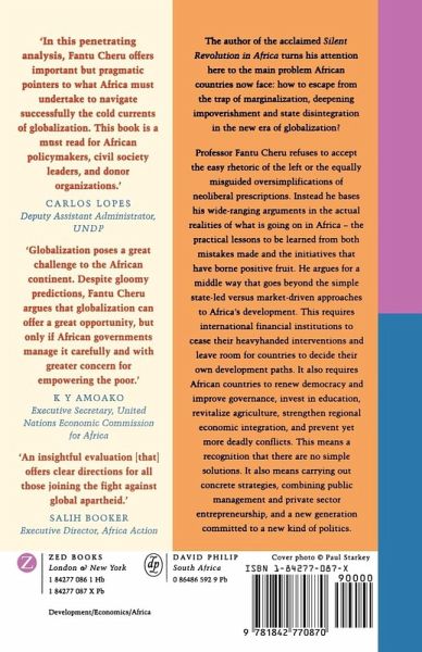 How can African countries escape from marginalization, deepening impoverishment and state disintegration in the new era of globalization? Fantu Cheru draws on his experience of many different countries to argue for a way beyond the simple state-led versus market-driven approaches to Africa's development. The international financial institutions must stop their heavy handed interventions and let countries decide their own development paths. African countries must work within the reality of globalization to renew democracy and improve governance; invest in education; revitalize agriculture, manage their cities, strengthen regional economic integration, and prevent yet more deadly conflicts. These require commonsense and non-dogmatic approaches, learning from local successes, entrepreneurship, and a new generation committed to a new kind of politics.