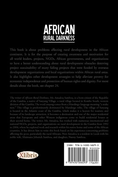 This book is about problems affecting rural development in the African continent. It is for the purpose of creating awareness and motivation for all world leaders, projects, NGOs, African governments, and organizations to have a better understanding about rural development obstacles deterring project sustainability of many failing projects that were funded by overseas development organizations and local organizations within African rural areas. It also highlights other development strategies to help alleviate poverty for economic independence and protection of human rights and dignity. For more details about the book, see chapter 24.
