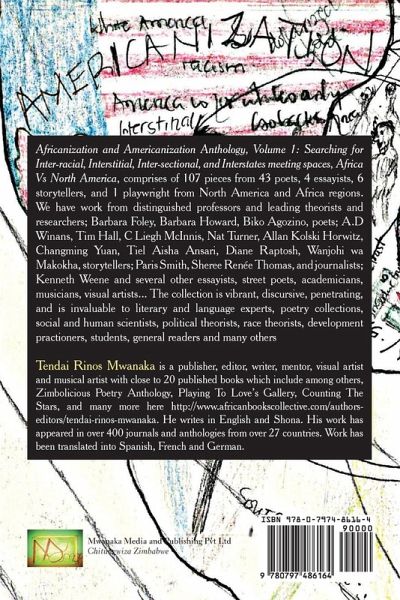 Africanization and Americanization Anthology, Volume 1: Searching for Inter-racial, Interstitial, Inter-sectional, and Interstates meeting spaces, Africa Vs North America, comprises of 107 pieces from 43 poets, 4 essayists, 6 storytellers, and 1 playwright from North America and Africa regions: professors, leading theorists and researchers. The contributors are: Barbara Foley, Barbara Howard, Biko Agozino, poets; A.D Winans, Tim Hall, C Liegh McInnis, Nat Turner, Allan Kolski Horwitz, Changming Yuan, Tiel Aisha Ansari, Diane Raptosh, Wanjohi wa Makokha, storytellers; Paris Smith, Sheree Renée Thomas, and journalists; Kenneth Weene and several other essayists, street poets, academicians, musicians, visual artists... This collection is vibrant, discursive, penetrating, and is invaluable to literary and language experts, poetry collections, social and human scientists, political theorists, race theorists, development practioners, students, general readers and many others.