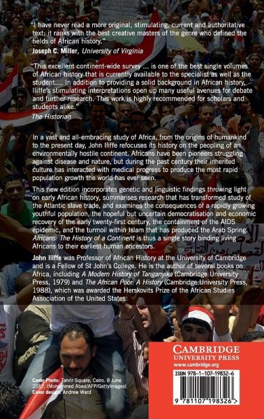 In a vast and all-embracing study of Africa, from the origins of mankind to the present day, John Iliffe refocuses its history on the peopling of an environmentally hostile continent. Africans have been pioneers struggling against disease and nature, but during the last century their inherited culture has interacted with medical progress to produce the most rapid population growth the world has ever seen. This new edition incorporates genetic and linguistic findings, throwing light on early African history and summarises research that has transformed the study of the Atlantic slave trade. It also examines the consequences of a rapidly growing youthful population, the hopeful but uncertain democratisation and economic recovery of the early twenty-first century, the containment of the AIDS epidemic and the turmoil within Islam that has produced the Arab Spring. Africans: The History of a Continent is thus a single story binding modern men and women to their earliest human ancestors.