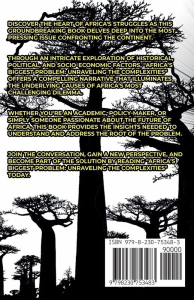 Discover the heart of Africa's struggles as this groundbreaking book delves deep into the most pressing issue confronting the continent. Through an intricate exploration of historical, political, and socio-economic factors, "Africa's Biggest Problem: Unraveling the Complexities" offers a compelling narrative that illuminates the underlying causes of Africa's most challenging dilemma. Whether you're an academic, policy-maker, or simply someone passionate about the future of Africa, this book provides the insights needed to understand and address the root of the problem. Join the conversation, gain a new perspective, and become part of the solution by reading "Africa's Biggest Problem: Unraveling the Complexities" today.