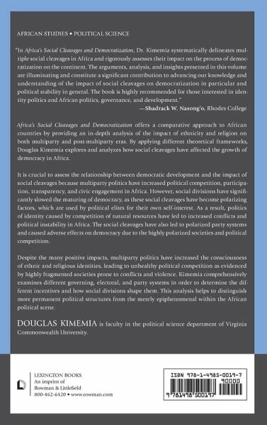 Africa's Social Cleavages and Democratization explains the variation in the occurrence and intensity of African ethnic and religious conflicts. Using the most current data, Kimemia argues that social cleavages have led to polarized party systems and political competition, adversely affecting democracy.