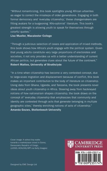 Introduction: why investigate urban youth citizenship in Africa? 1. Theorizing urban youth and everyday citizenship 2. Manifesting citizenship through local and distinct actions 3. Engaging the state 4. Confronting economic marginalization 5. Contesting citizenship through religious identity 6. Affirming and challenging patriarchy 7. Channeling frustration through exit, exclusion and engagement Conclusion: challenging marginalization, claiming citizenship Appendix I: Thematic categories for content analysis Appendix II: Fieldwork questions Appendix III: Fieldwork interviews and focus group discussions.