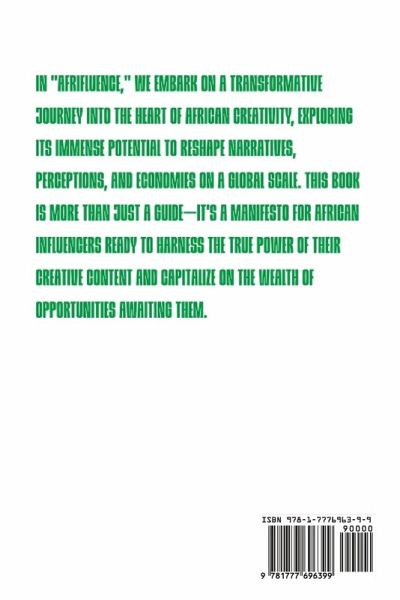In "Afrifluence," we embark on a transformative journey into the heart of African creativity, exploring its immense potential to reshape narratives, perceptions, and economies on a global scale. This book is more than just a guide, it's a manifesto for African influencers ready to harness the true power of their creative content and capitalize on the wealth of opportunities awaiting them.