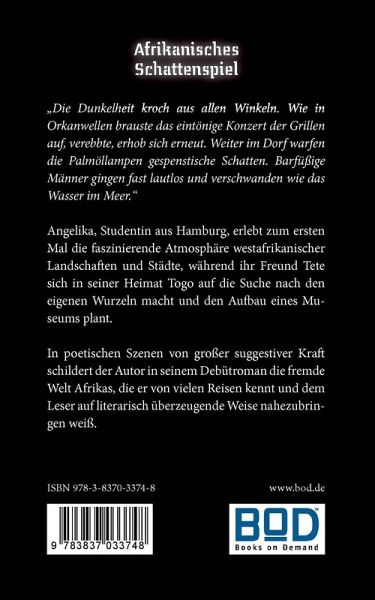 "Die Dunkelheit kroch aus allen Winkeln. Wie in Orkanwellen brauste das eintönige Konzert der Grillen auf, verebbte, erhob sich erneut. Weiter im Dorf warfen die Palmöllampen gespenstische Schatten. Barfüßige Männer gingen fast lautlos und verschwanden wie das Wasser im Meer."Angelika, Studentin aus Hamburg, erlebt zum ersten Mal die faszinierende Atmosphäre westafrikanischer Landschaften und Städte, während ihr Freund Tete sich in seiner Heimat Togo auf die Suche nach den eigenen Wurzeln macht und den Aufbau eines Museums plant.In poetischen Szenen von großer suggestiver Kraft schildert der Autor in seinem Debütroman die fremde Welt Afrikas, die er von vielen Reisen kennt und dem Leser auf literaisch überzeugender Weise nahe zu bringen weiß.