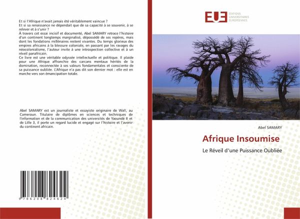 Et si l'Afrique n'avait jamais été véritablement vaincue ?Et si sa renaissance ne dépendait que de sa capacité à se souvenir, à se relever et à s'unir ?À travers cet essai incisif et documenté, Abel SAMARY retrace l'histoire d'un continent longtemps marginalisé, dépossédé de ses repères, mais dont les fondations millénaires restent vivantes. Du temps glorieux des empires africains à la blessure coloniale, en passant par les ravages du néocolonialisme, l'auteur invite à une introspection collective et à un réveil panafricain.Ce livre est une véritable odyssée intellectuelle et politique. Il plaide pour une Afrique affranchie des carcans mentaux hérités de la domination, reconnectée à ses valeurs fondamentales et consciente de sa puissance oubliée. L'Afrique n'a pas dit son dernier mot : elle est en marche vers son émancipation totale.