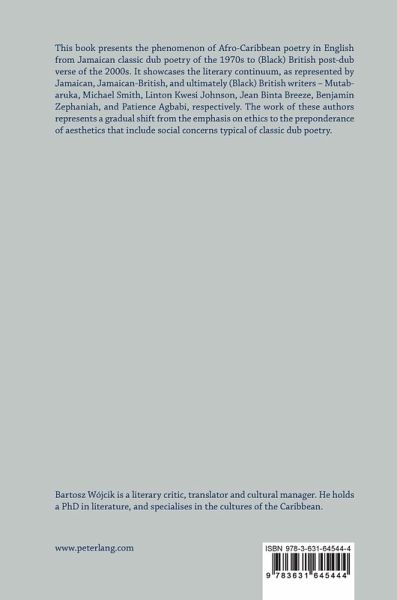 This book presents the phenomenon of Afro-Caribbean poetry in English from Jamaican classic dub poetry of the 1970s to (Black) British post-dub verse of the 2000s. It showcases the literary continuum, as represented by Jamaican, Jamaican-British, and ultimately (Black) British writers - Mutabaruka, Michael Smith, Linton Kwesi Johnson, Jean Binta Breeze, Benjamin Zephaniah, and Patience Agbabi, respectively. The work of these authors represents a gradual shift from the emphasis on ethics to the preponderance of aesthetics that include social concerns typical of classic dub poetry.