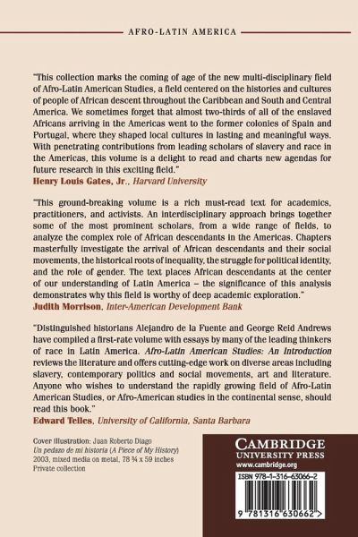 1. Afro-Latin American studies: an introduction Alejandro de la Fuente and George Reid Andrews; Part I. Inequalities: 2. The slave trade to Latin America: a historiographical assessment Roquinaldo Ferreira and Tatiana Seijas; 3. Inequality: race, class, gender George Reid Andrews; 4. Afro-indigenous interactions, relations, and comparisons Peter Wade; 5. Law, silence, and racialized inequalities in the history of Afro-Brazil Brodwyn Fischer, Keila Grinberg and Hebe Mattos; Part II. Politics: 6. Currents in Afro-Latin American political and social thought Frank Guridy and Juliet Hooker; 7. Rethinking black mobilization in Latin America Tianna Paschel; 8. 'Racial democracy' and racial inclusion: hemispheric histories Paulina Alberto and Jesse Hoffnung-Garskof; Part III. Culture: 9. Literary liberties: the authority of Afrodescendant authors Doris Sommer; 10. Afro-Latin American art Alejandro de la Fuente; 11. A century and a half of scholarship on Afro-Latin American music Robin Moore; 12. Afro-Latin American religions Stephan Palmié and Paul Christopher Johnson; 13. Environment, space and place: cultural geographies of colonial Afro-Latin America Karl Offen; Part IV. Transnational Spaces: 14. Transnational frames of Afro-Latin experience: evolving spaces and means of connection, 1600-2000 Lara Putnam; 15. Afro-Latinos: speaking through silences and rethinking the geographies of blackness Jennifer A. Jones.