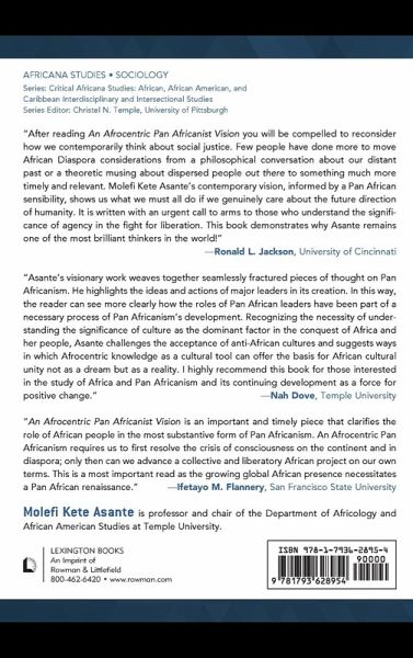 In An Afrocentric Pan Africanist Vision: Afrocentric Essays, Molefi Kete Asante, engages the age-old debate on Pan Africanism by providing an innovative orientation to the established discourse developed during the twentieth century. Asante opens an interrogation of the Padmorian tradition of a socialist Pan Africanism by suggesting that a deeper entry into the histories and narratives of the literary, economic, social, and spiritual values of the thousands of African societies scattered throughout the world could sustain a different agency analysis of Pan Africanism without grafting an external idea on the unity of Africa. Using his vast knowledge of the history of Africa, Asante suggests that the African renaissance cannot take place unless there is a commitment to creating an African community conscious of its own myths, origins, and economic, cultural, and philosophical traditions.