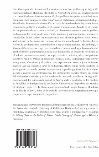 Este libro explora la dinámica de los movimientos sociales garífunas y su migración transnacional entre Honduras y la ciudad de Nueva York. Como pueblo afroindígena con comunidades en cinco estados-nación, los garífunas son ejemplares de las formas complejas cómo las ideas de raza, etnia y nación configuran condiciones de trabajo, identidades, formas de discriminación, así como formas de resistencia y movimientos económicos, políticos y sociales en el espacio transnacional. Basado en el trabajo de campo realizado en la década de 1990, el libro muestra cómo el pueblo garífuna problematiza los modelos de inmigración unilineal y asimilacionista, mediante la vinculación de sus aldeas centroamericanas con ciudades globales como Nueva York a través de la circulación constante de bienes, miembros de la familia, dinero e ideas, lo que forma una comunidad en el espacio transnacional. Sin embargo, el libro también da a conocer que las comunidades transnacionales garífunas enfrentan muchos desafíos para su supervivencia bajo los modelos de desarrollo neoliberal en Honduras que amenazan sus tierras, supervivencia económica y derechos políticos; la división racial de trabajo en los Estados Unidos, la cual los margina como pobres, inmigrantes, afrolatinos; y el racismo que experimentan como sujetos indígenas, negros y latinos a lo ancho y largo de su diáspora. El libro es una fuente excelente de investigación para toda persona interesada en el pueblo garífuna, los afro-latinos, la raza y racismo en Centroamérica, los movimientos sociales étnicos en contra del nacionalismo mestizo y de los modelos de desarrollo neoliberal, la migración transnacional, los latinos en la ciudad de Nueva York; y los efectos de los cambios en la política de inmigración de los Estados Unidos sobre los pueblos de América Central en el siglo XX. El libro expone la situación de los garífunas en Honduras en la década de 1990, antes de la crisis de la violencia y la migración masiva que empezaron a experimentar en el siglo XXI.