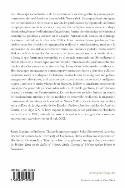 Este libro explora la dinámica de los movimientos sociales garífunas y su migración transnacional entre Honduras y la ciudad de Nueva York. Como pueblo afroindígena con comunidades en cinco estados-nación, los garífunas son ejemplares de las formas complejas cómo las ideas de raza, etnia y nación configuran condiciones de trabajo, identidades, formas de discriminación, así como formas de resistencia y movimientos económicos, políticos y sociales en el espacio transnacional. Basado en el trabajo de campo realizado en la década de 1990, el libro muestra cómo el pueblo garífuna problematiza los modelos de inmigración unilineal y asimilacionista, mediante la vinculación de sus aldeas centroamericanas con ciudades globales como Nueva York a través de la circulación constante de bienes, miembros de la familia, dinero e ideas, lo que forma una comunidad en el espacio transnacional. Sin embargo, el libro también da a conocer que las comunidades transnacionales garífunas enfrentan muchos desafíos para su supervivencia bajo los modelos de desarrollo neoliberal en Honduras que amenazan sus tierras, supervivencia económica y derechos políticos; la división racial de trabajo en los Estados Unidos, la cual los margina como pobres, inmigrantes, afrolatinos; y el racismo que experimentan como sujetos indígenas, negros y latinos a lo ancho y largo de su diáspora. El libro es una fuente excelente de investigación para toda persona interesada en el pueblo garífuna, los afro-latinos, la raza y racismo en Centroamérica, los movimientos sociales étnicos en contra del nacionalismo mestizo y de los modelos de desarrollo neoliberal, la migración transnacional, los latinos en la ciudad de Nueva York; y los efectos de los cambios en la política de inmigración de los Estados Unidos sobre los pueblos de América Central en el siglo XX. El libro expone la situación de los garífunas en Honduras en la década de 1990, antes de la crisis de la violencia y la migración masiva que empezaron a experimentar en el siglo XXI.