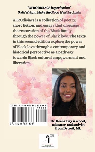 AFROdisiacs is a collection of short works about the power of Black Love. This texts weaves concepts about the state of Black love and how the Black community must reflect and preserve it in order for the Black family to thrive. Through poetry, essays, memoirs, and short fiction, AFROdisiacs discusses the importance of "intoxication" that should exist in our loveships and provides descriptions of various ways this love is manifested.