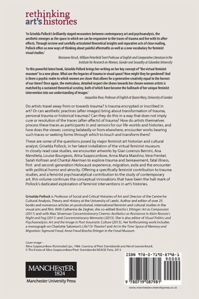 In closely-read case studies, we encounter artworks by Gian Lorenzo Bernini, Ana Mendieta, Louise Bourgeois, Alina Szapocznikow, Anna Maria Maiolino, Vera Frenkel, Sarah Kofman and Chantal Akerman to explore trauma and bereavement, fatal illness, Holocaust experience, migration, exile and the encounter with political horror and atrocity. -- .