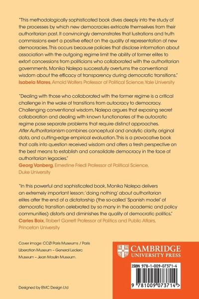 Does transitional justice â the practice of reckoning with members and collaborators of a former authoritarian regime â stabilize or destabilize new democracies? After Authoritarianism shows engaging with secret legacies authoritarian regimes to be critical for the success of new democracies, more so than purging old elites from the state apparatus.