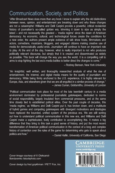 "After Broadcast News does more than any book I know to explain why the old distinctions between news, opinion, and entertainment are breaking down and why these changes are not a catastrophe! Williams and Delli Carpini provide a powerful, critical revisionist history of journalism's so-called golden era, trimming it down to size as simply the latest - and not necessarily the greatest - 'media regime' since the dawn of American democracy. As economic, cultural, and technological forces create the conditions for a new order, the authors present ample evidence of talk show hosts, filmmakers and actors, comedians, musicians, bloggers, and engaged citizens making creative use of media for democratically-useful ends. Journalism will continue to have an important role to play. At the end of the day, though, what's really important is not who produces politically-relevant discourse, but simply that it is created and disseminated as widely as possible. This book will change the way you see the world. It's a compelling call to arms to stop fighting the last era's media battles in order to better direct the changes to come."