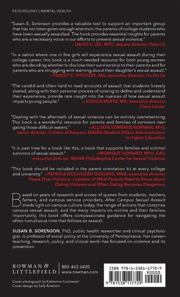 After Campus Sexual Assault: A Guide for Parents is the only comprehensive resource for families dealing with campus sexual assault. Based on the latest research with scores of firsthand accounts from students, mothers, fathers, and campus service providers, this book provides in-depth guidance for navigating the aftermath.
