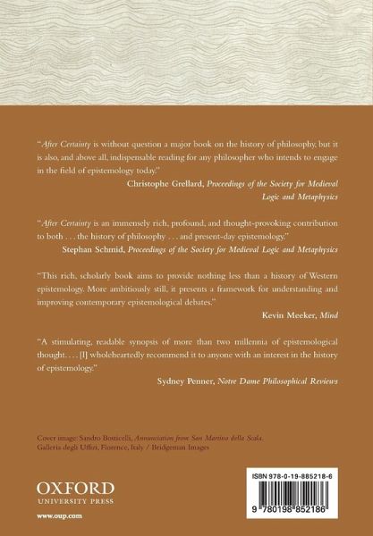 No part of philosophy is as disconnected from its history as is epistemology. After Certainty offers a reconstruction of that history, understood as a series of changing expectations about the cognitive ideal that beings such as us might hope to achieve in a world such as this. The story begins with Aristotle and then looks at how his epistemic program was developed through later antiquity and into the Middle Ages, before being dramatically reformulated in the seventeenth century. In watching these debates unfold over the centuries, one sees why epistemology has traditionally been embedded within a much larger sphere of concerns about human nature and the reality of the world we live in. It ultimately becomes clear why epistemology today has become a much narrower and specialized field, concerned with the conditions under which it is true to say, that someone knows something. Based on a series of lectures given at Oxford University, Robert Pasnau's book ranges widely over the history of philosophy, and examines in some detail the rise of science as an autonomous discipline. Ultimately Pasnau argues that we may have no good reasons to suppose ourselves capable of achieving even the most minimal standards for knowledge, and the final chapter concludes with a discussion of faith and hope.