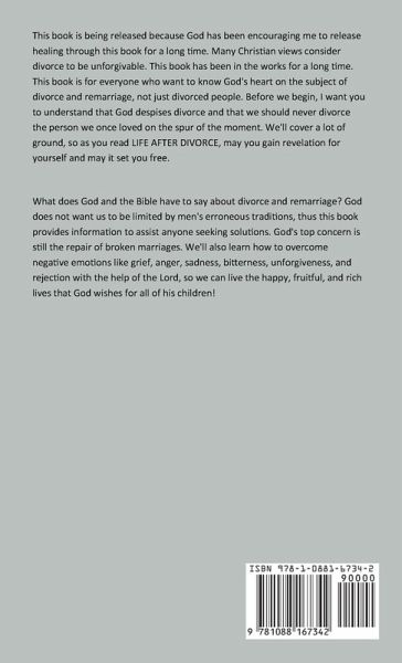 This book is being released because God has been encouraging me to release healing through this book for a long time. Many Christian views consider divorce to be unforgivable. This book has been in the works for a long time. This book is for everyone who want to know God's heart on the subject of divorce and remarriage, not just divorced people. Before we begin, I want you to understand that God despises divorce and that we should never divorce the person we once loved on the spur of the moment. We'll cover a lot of ground, so as you read LIFE AFTER DIVORCE, may you gain revelation for yourself and may it set you free. What does God and the Bible have to say about divorce and remarriage? God does not want us to be limited by men's erroneous traditions, thus this book provides information to assist anyone seeking solutions. God's top concern is still the repair of broken marriages. We'll also learn how to overcome negative emotions like grief, anger, sadness, bitterness, unforgiveness, and rejection with the help of the Lord, so we can live the happy, fruitful, and rich lives that God wishes for all of his children!