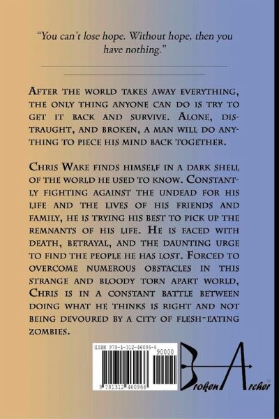 "You can't lose hope. Without hope, then you have nothing." After the world takes away everything, the only thing anyone can do is try to get it back and survive. Alone, distraught, and broken a man will do anything to piece his mind back together. Chris Wake finds himself in a dark shell of the world he used to know. Constantly fighting against the undead for his life and the lives of his friends and family, he is trying his best to pick up the remnants of his life. He is faced with death, betrayal, and the daunting urge to find the people he has lost. Forced to overcome numerous obstacles in this strange and bloody torn apart world, Chris is in a constant battle between doing what he thinks is right and not being devoured by a city of flesh eating zombies.