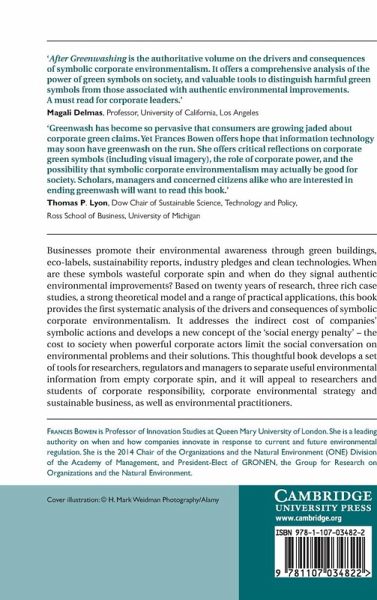 Businesses promote their environmental awareness through green buildings, eco-labels, sustainability reports, industry pledges and clean technologies. When are these symbols wasteful corporate spin, and when do they signal authentic environmental improvements? Based on twenty years of research, three rich case studies, a strong theoretical model and a range of practical applications, this book provides the first systematic analysis of the drivers and consequences of symbolic corporate environmentalism. It addresses the indirect cost of companies' symbolic actions and develops a new concept of the 'social energy penalty' - the cost to society when powerful corporate actors limit the social conversation on environmental problems and their solutions. This thoughtful book develops a set of tools for researchers, regulators and managers to separate useful environmental information from empty corporate spin, and will appeal to researchers and students of corporate responsibility, corporate environmental strategy and sustainable business, as well as environmental practitioners.
