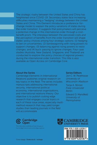 This Element introduces a preference-for-change model to explain the policy variations of states during the order transition. It suggests that policymakers will perceive a potential change in the international order through a cost-benefit prism.This title is also available as Open Access on Cambridge Core.