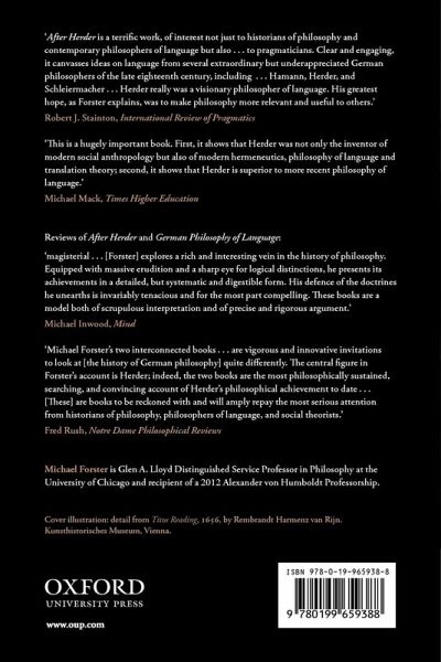 Michael Forster explores the historical roots of philosophy of language, which he traces to German thinkers of the 18th century, among whom J. G. Herder is the key figure. Herder established fundamental principles concerning thought, meaning, and language, founded the disciplines of anthropology and linguistics, and has much still to teach us.
