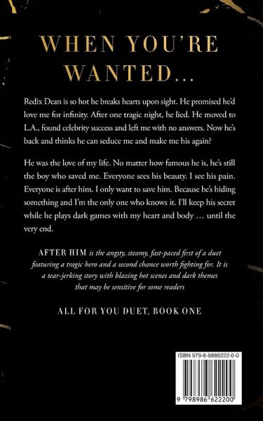To the rest of the world, he's Hollywood's bad boy, their naughty Romeo. To me, he's my crushing soulmate. The one with a dark secret. Redix Dean is so hot he breaks hearts upon sight. He promised he'd love me for infinity. After one tragic night that I can't remember, he lied. He moved to LA, found celebrity success, and left me with no answers. Only haunting questions, a destroyed heart, and an obsession for revenge. Now he's back and thinks he can seduce me again? He was the love of my life. My first everything. No matter how famous he is, he's still the boy who saved me. Everyone sees his beauty, his fame. I see his pain. Everyone is after him. They all want him. I only need to save him. Because he's hiding something and I'm the only one who knows it. I'll let him play his dark games with my heart and body ... until I know his secret. Our secret. "After Him" is the very steamy, angsty, fast-paced first of a duet featuring a tragic hero and a second chance worth fighting for. It is a tear-jerking story with blazing hot scenes and dark themes that may be sensitive for some readers.