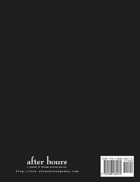 After Hours, a journal of Chicago writing and art, since June 2000. A bi-annual literary journal, this is issue #46 Summer 2023 with featured writer Haki R. Madhubuti. Past issues of After Hours have included Mark Turcotte, Stuart Dybek, Diane DiPrima, Norbert Blei, Billy Lombardo, Rane Arroyo, Albert DeGenova, Marty McConnell, David Hernandez, Herb Nolan, Nina Corwin, Jacob Saenz, and many more writers and artists who call (or have called) Chicago home. www.afterhourspress.com